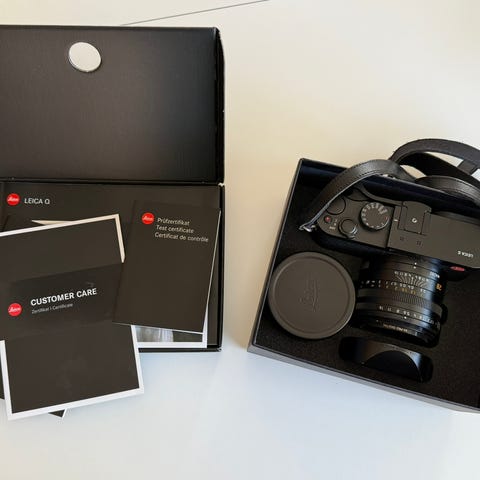 Alla originaltillbehör till kameran finns (laddare, rem, instruktionsböker etc). Orginalkartong finns. Kvitto finns. Alla delar är mycket välvårdade och utan repor och skav. Plasten kvar på kamerans undersida.