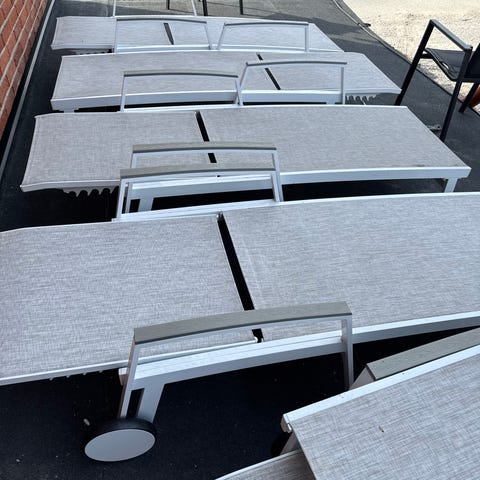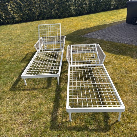 Solstolar Ikea Nämmarö 2st i trä med vita dynor justerbara ryggstöd hjul