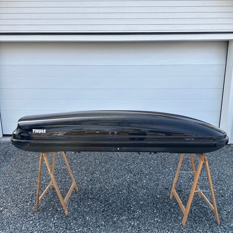 Svart Takbox i ok skick säljes, det finns några repor i lacken om man tittar på den nära, men inget som stör funktionen. Fanns även i Volvo version med Volvo klistermärken, men detta är Thule versionen. 2 nycklar. Öppningsbar åt båda sidorna. Följer även med ett par Biltema takräcken för bars om man vill.