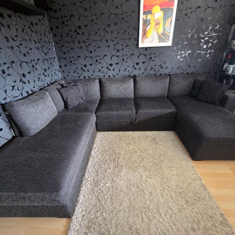 Soffan är gjord på två delar (divandelen och den vanliga delen) som går att separera på för enklare förflyttning. Den är väldigt tung och är på våran övervåning så jag rekommenderar att du har med dig bärhjälp, då vi inte har möjligheten att hjälpa.