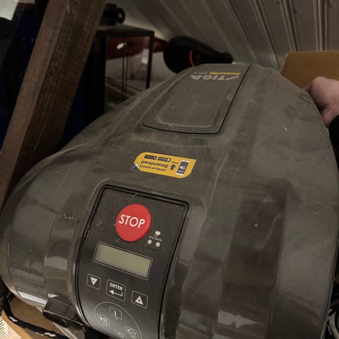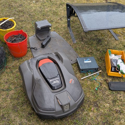Robot med laddstation, kabel med märlor och lagningskit, samt manualer. Den gröna skålen på bild medföljer ej. Kabeln är bruten men lagad. Roboten medföljde vid husköp och fungerade vid köpet 2024, ej körd sedan dess.