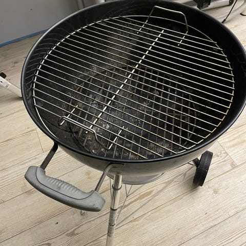 Weber klotgrill för kolgrillning i svart metall. Grillen har lock med inbyggd termometer och handtag, samt ventil i locket för reglering av luftflöde. Underdelen är försedd med askuppsamlare och reglage för luftintag. Grillgallret är runt med avtagbar mittdel för flexibel grillning. Stativ med tre ben ger stabilitet och grillen har sidhandtag för enklare förflyttning. Passar för utomhusbruk i trädgård, på uteplats eller liknande ytor.