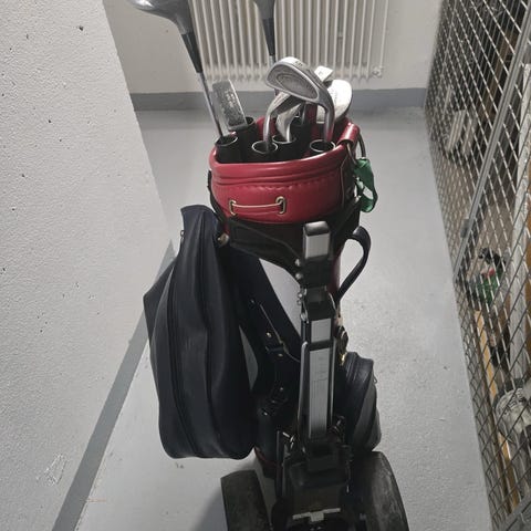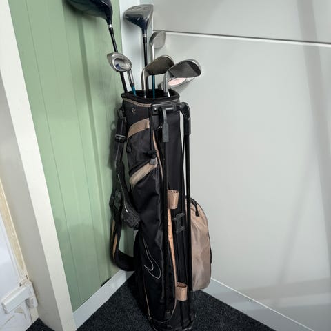 Golfset med bag och vagn för barn ca 140 cm. Passar nybörjare.
