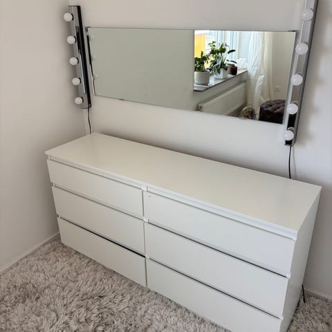 Säljer sminkbord med glasskiva och byrå med spegel, går att köpa separat! Bara höra av sig vid frågor!😊