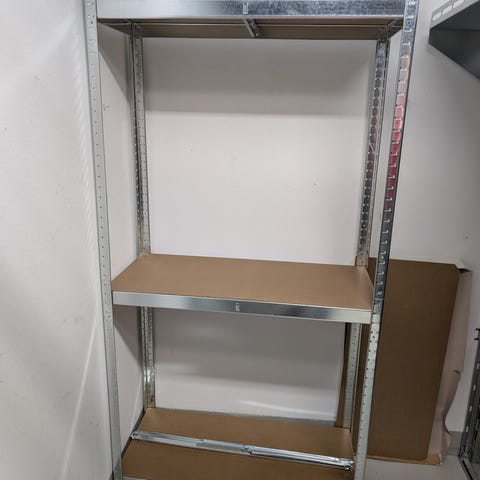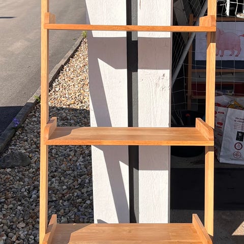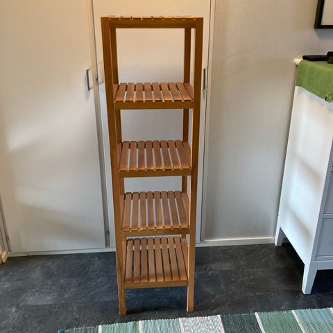 Hopvikbar växthylla från Plantagen i stil som påminner om shabby chic. Har endast använts inomhus. Det finns en spricka i ett av de bakre benen, de sista två bilderna.