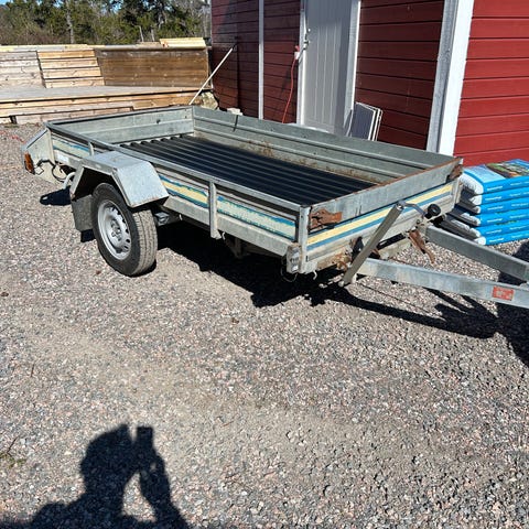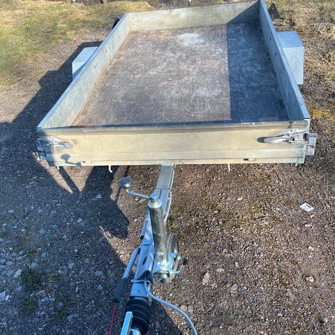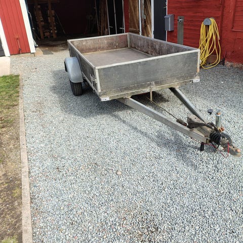 Utrustad med stödhjul, dragkrokfäste och bakre positions- och bromsljus. 2 st dubbade vinterhjul (Hakkapelita)