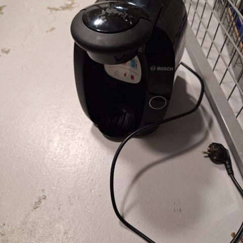 En mycket bra kaffemaskin från bosch, den har använts sparsamt men har fått repor pga flytt.