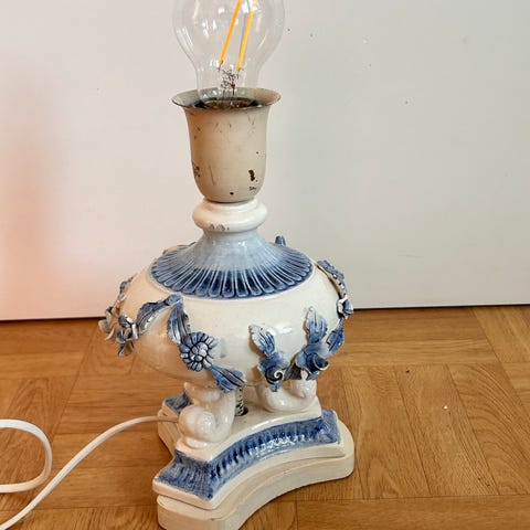 Vad som ser ut som en lampfot gjord av poslinsvas ej jordad