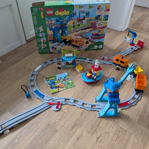 Tre delar. Bro och två tågspår i trä. Original kartongen medföljer. Används med ert barns smart tech tåg.