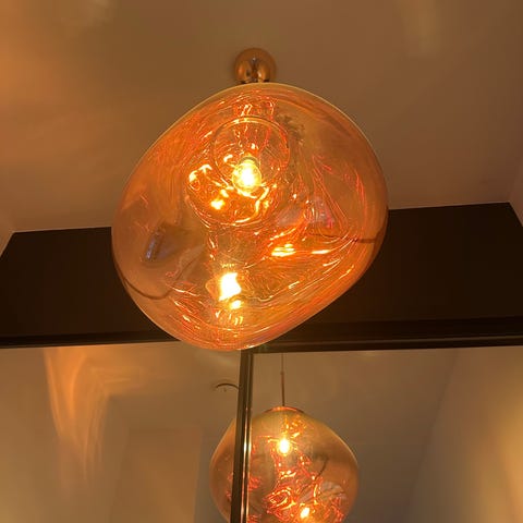 Tre fönster- eller taklampor från Tom Dixon på 200 cm skena. Lamporna kostar 5000kr/st nya.