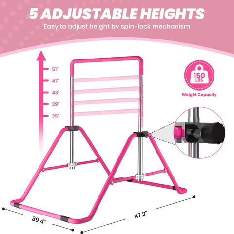 Låg, röd gymnastikbänk av klassisk typ, ca 70/80-tal. Runda ben i trä.