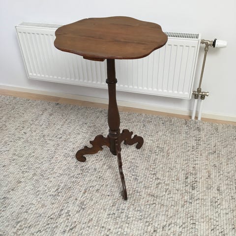 Det andra bordet har ett ben som är löst. Finare bordsskiva.