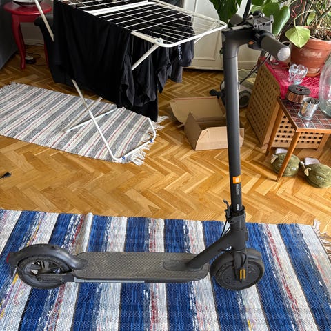 En elsparckyckel med punkteringsfria däck som kommer med en laddare, wild man förvaring och en Twooc tuta. Elsparkcykeln går i ca 25/kmh. Den har en ganska ny stänkskärm bak.