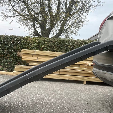 Rejäl hundramp, Dogman, som under användning klarar upp till 90kg. Med ordentlig antislip-yta så hunden kan gå tryggt utan att halka. Enkel att använda och fälla ihop. När rampen är i hopfälld blir den 80x40x19cm, utfälld längd 156cm.