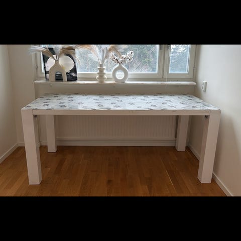 Sminkbord med en glasskiva och utdragbar låda med en matta i botten. Mångfunktionell och enkel design med en touch av elegans!