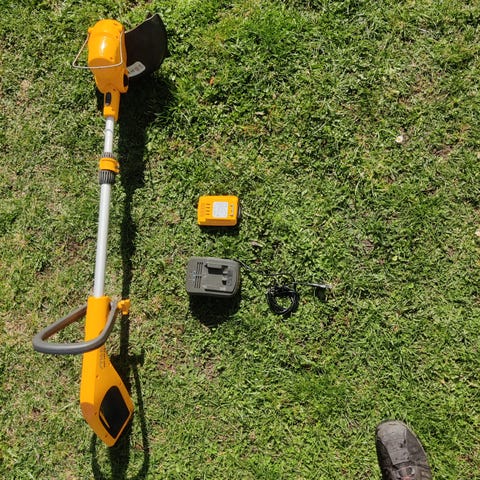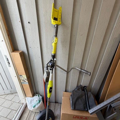 Säljer en lävblå som man kopplat ihop med en slad och en trimer som man använde med batteri,batteri ej säljs med och trimen har en skada längt nere där det sitter tejp.