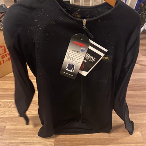 Knox skyddsjacka i svart färg, storlek L. Skön att använda under en hoodie eller endast jackan under sommardagar.