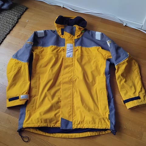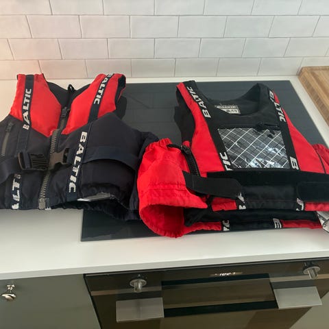 Varma seglartröjor med flytbäst för hela familjen; 2 XL och 2 M. Pris 600 kr st alt alla 4 för 2 000 kr