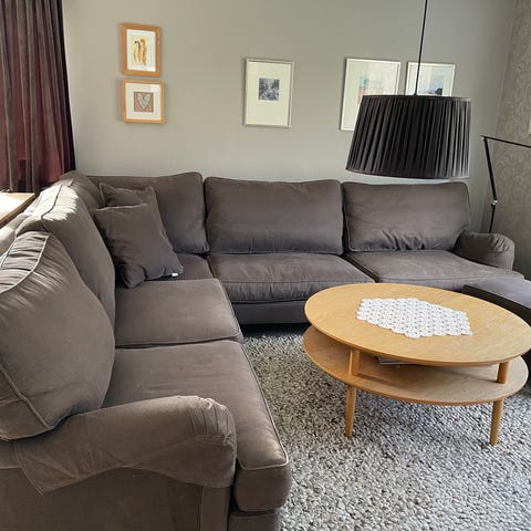 Säljer en stor och mycket bekväm hörnsoffa i neutral beige/brun färg.Perfekt för familj eler större vardagsrum.