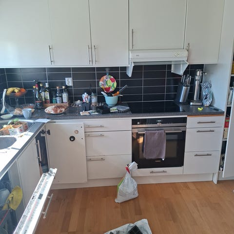 Bortskänkes: Litet kök / pentry med skåp, diskho & fläkt