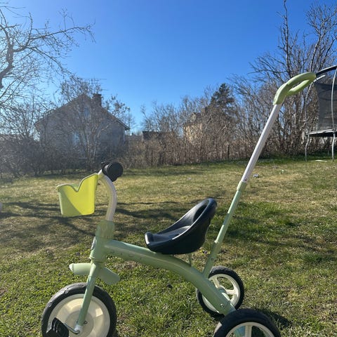 Fin och klassisk trehjuling designad för att ge barn en säker och rolig start på cykelträningen. Med en robust stålram, ergonomisk sits och retrodesign är denna cykel både stilren och funktionell. Den har ett justerbart styre, halkfria handtag och en frihjulsfunktion på framhjulet, så att barnet kan vila fötterna medan en vuxen skjuter på. Perfekt för att utveckla balans, motorik och koordination innan barnet lär sig att cykla på egen hand.