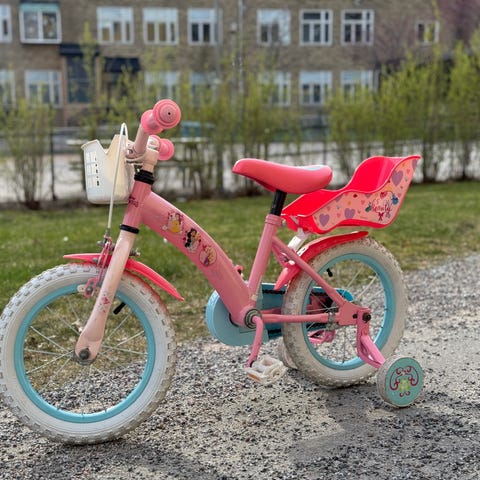 Säljer min sons cykel som tyvärr har blivit för liten för honom , den är nästan som ny, väldigt sparsamt använd, det finns stödhjul till den.