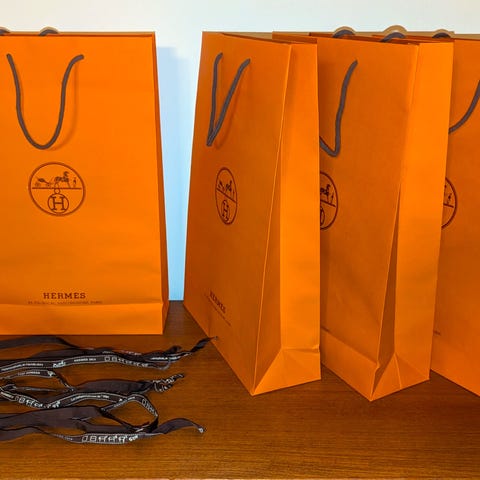Hermès sidensjal med tryckt motiv av pariserhjul och gondoler i flera färger. Basen är ljus med blå kant och detaljer i bland annat rött, gult, grönt och orange. Sjal i fyrkantig modell som kan bäras runt halsen, som accessoar i håret eller knytas på väska. Levereras med originalask enligt bild.