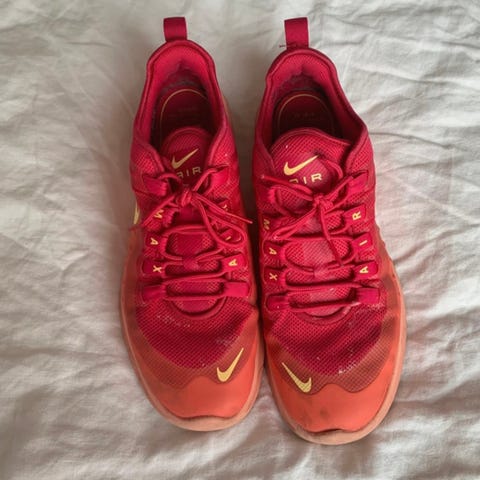 Nike Air Max Hyperfuse sneakers i en mix av rosa, blått och vitt med lila detaljer. Skorna har meshmaterial för bra ventilation, vita snören och den klassiska Air Max-sulan med synlig luftdämpning. Swoosh-logga på sidan och Nike Air-märke på plösen.
