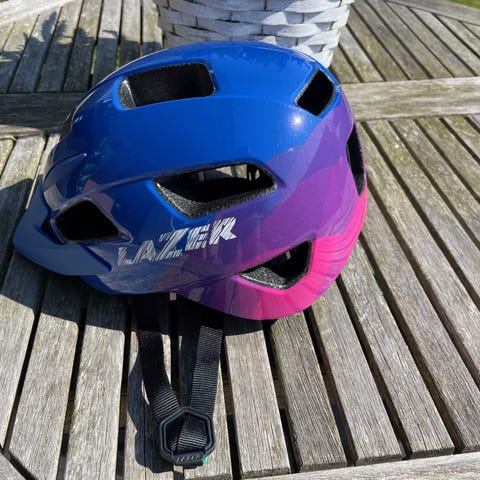 Cykelhjälm till barn med MIPS-system och inbyggd baklampa. Hjälmen är svart och har flera ventilationsöppningar för luftflöde. Justerbart spänne baktill för bättre passform.