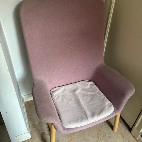 Vi säljer vår fina sammetsfåtölj som är i riktigt bra skick pga. inköp av nya möbler.