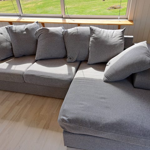 Ljusgrå hörnsoffa med både divan och schäslong i mkt bra skick, inga fläckar