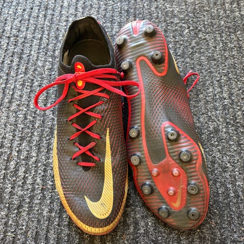 Äkta fotbollsskor i flera olika modeller och färger. Skorna är avsedda för fotbollsspel och finns bland annat med dobbar för spel på gräs, konstgräs, och grusplan.
