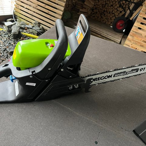 Greenworks 40V motorsåg i mycket gott skick. Endast använd en säsong och fungerar felfritt.