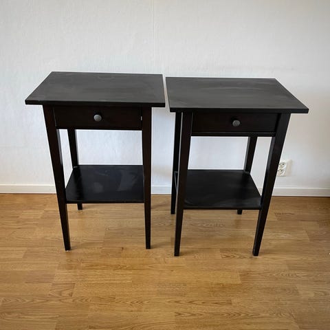 Två fina nattduksbord från Mio. Vi har bytt ut knopparna men originalknopparna följer också med.