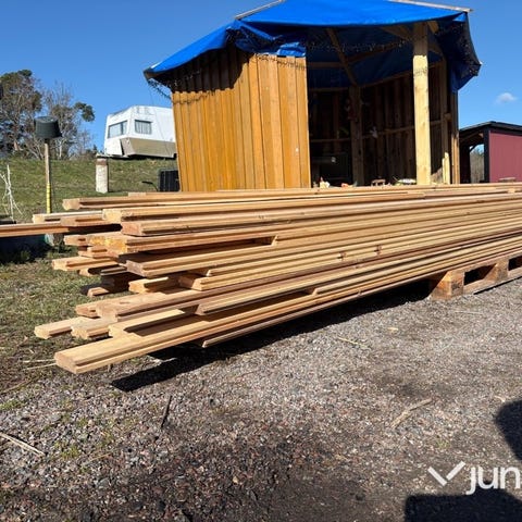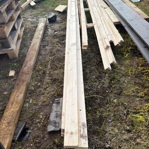 Gammla golvplankor och lite stockar några är dåliga men går kanske att såga bort det