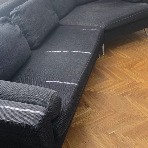 Stor och fin soffa från Bellus i bra skick förutom tyget på ena ryggkudden. Inte orkat fixa nya klädsel därav billiga priset. Pris kan diskuteras vid smidig affär!