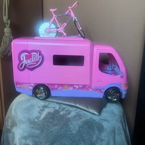 Rosa leksaksbil / husbil med tillbehör