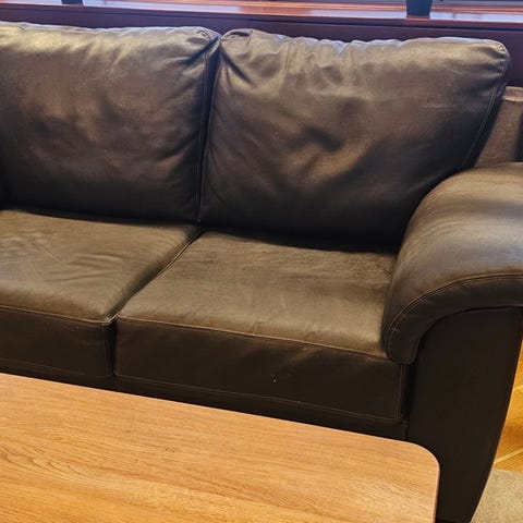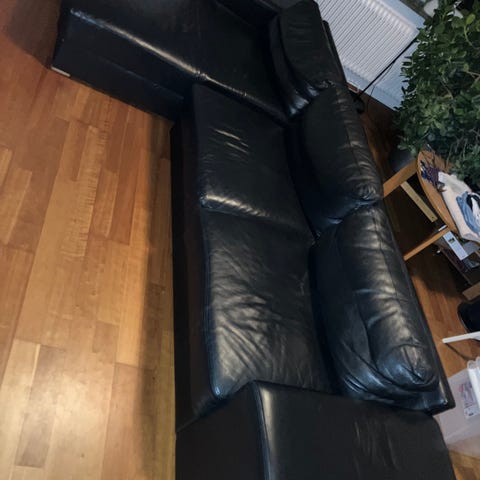 Säljer en bekväm schäslong i svart skinn/skinnliknande material.