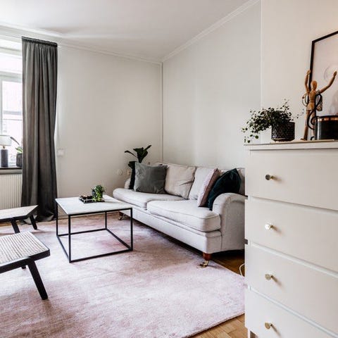 Använd väl men fortfarande i bra skick. Klädseln går att ta av och tvätta.