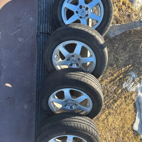 Däcken är använda men har fortfarande mönster kvar (se bilder). Perfekt som sommarhjul eller reserv.