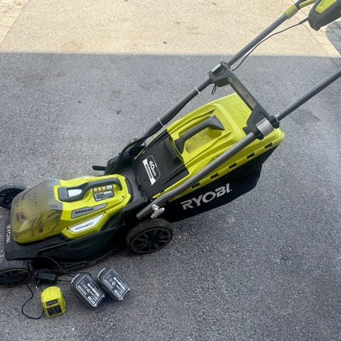 En Ryobi gräsklippare som är lite starkare och bredare än vanligt. Tar 18V Ryobi batteri och har 40cm klippbredd. Borstlös motor som anpassar kraft efter det som behövs. Plats för 2 batteri men kan drivs med ett. Säljes komplett med uppsamlare, bra 5Ah batteri och laddare.