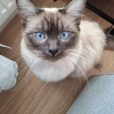 Vi söker ett kärleksfullt hem till vår fina ragdollhona. Hon är snart 3 år gammal (född 7 juli). Hon är en lugn och snäll katt som aldrig rivs och har ett mycket vänligt temperament.