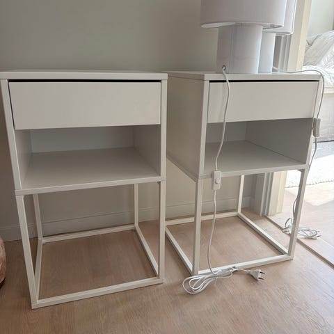 Säljer 2st Vikhammer nattduksbord / sängbord vita.