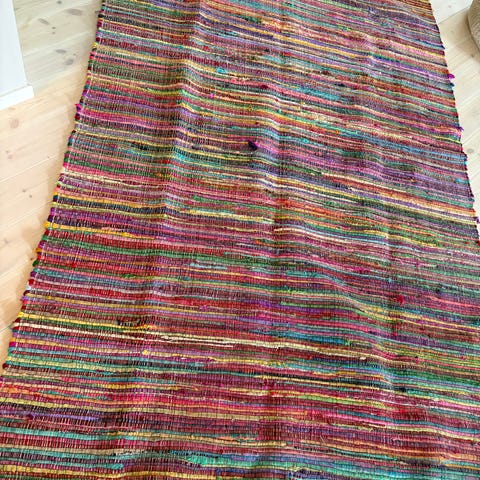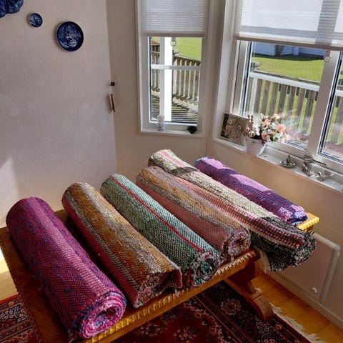 Säljer två trasmattor i fina gröna nyanser.