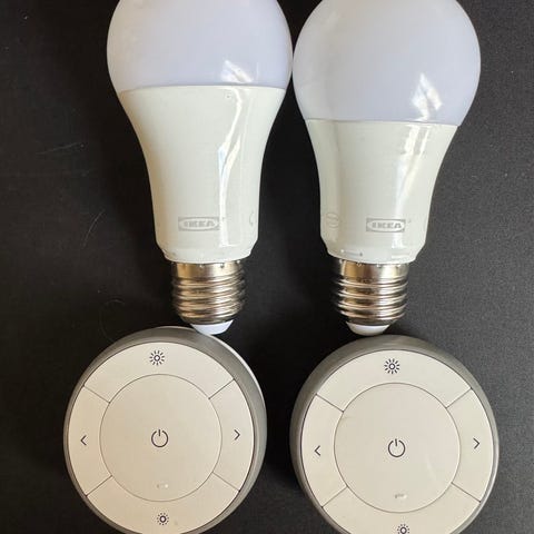 2 st. E27 (använda i mindre än en månad) och en dimmer switch som behöver nya batterier