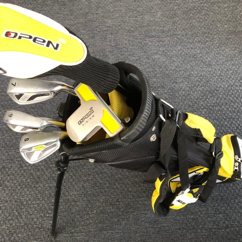 - Setet innehåller 3 järnklubbor (S, J9, J7), en 3 Wood med matchande headcover, Putter, och en Bärbag. Bagen är liten men har en axelrem för enkel bärande och tre olika fack för förvaring av vattenflaska, bollar, peggar och tillbehör, mm.