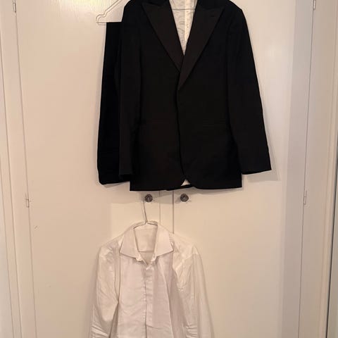 Riley väst och byxor i svart färg plus vit skjorta. Storlek XL. Inte mycket använt.
