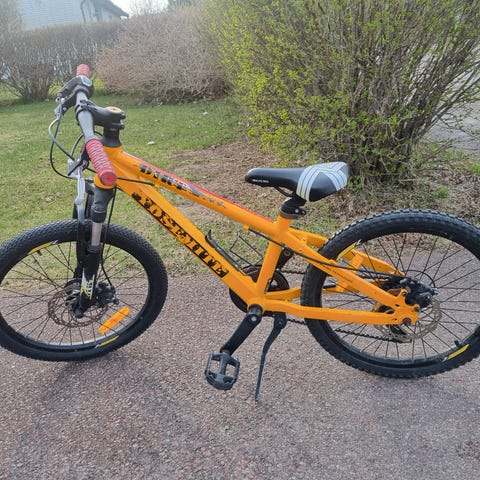Crescent barncykel med 24" hjul. Cykeln har orange ram, rakt styre och sadel anpassad för barn. Utrustad med pedaler, kedjeskydd och handbroms samt fotbroms. 3 växlar. I använt skick men allt fungerar.