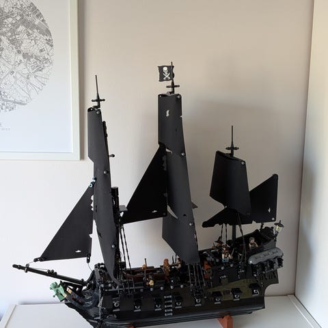 Setet består av 295 delar och 4 minifigurer och är 100% komplett. Alla segel ingår – inklusive de unika seglen med röda linjer, korsade kanoner och krona, som endast finns i detta set.