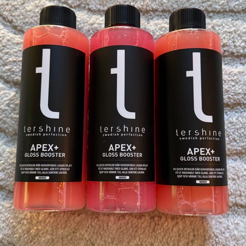 tershine Purify S+ är ett keramiskt schampo med en frisk doft av grönt äpple som i ett och samma steg rengör och lämnar ett vattenavstötande skydd. Perfekt för dig som vill lämna ett lackskydd på din bil utan krångel eller dig som vill ge ditt befintliga lackskydd en boost. tershine Purify S+ skulle kunna liknas med att ha tershines klassiska schampo Purify S och tershine snabbförsegling Refract i samma flaska. Blandningsförhållandet ligger på mellan 1:250-1:500 och fungerar helt fantastiskt att applicera med hjälp av en foam lance. tershine Purify S+ fungerar bra att använda på de flesta lacker och fungerar också fint på exempelvis båt, husbil eller husvagn och vattenskoter.